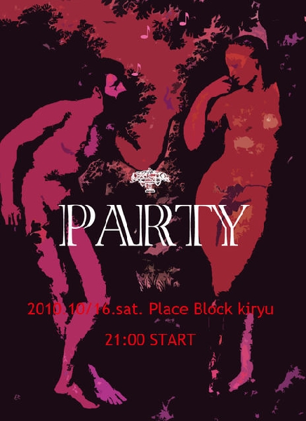 "PARTY"と題して、県内外で活躍するアーティストが集結する一夜。今回、そのvol'1と称して、これぞ"PARTY"をコンセプトになんと・・・・なんと!!!飲み放題!!!の大盤振る舞いのお祭りイベント!!!! 踊るもよし、飲んで騒ぐもよし! 遊びに来てくれたお客様全てが<純粋に><楽しい>と感じる日になるのは間違いなし!!!