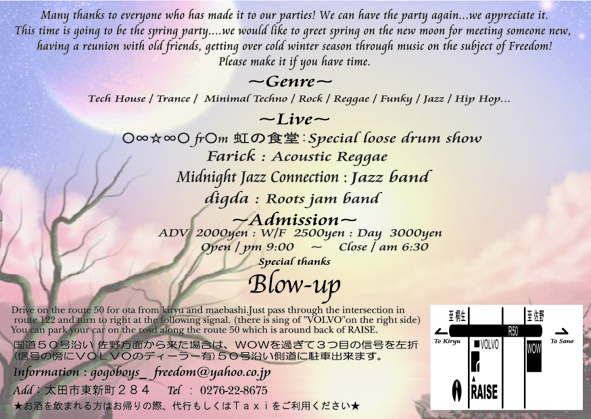 ADV 2000yen : W/F 2500yen : Day 3000yen